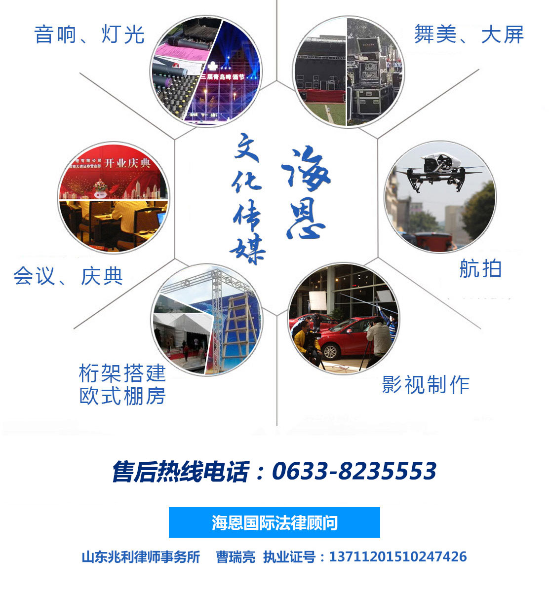 日照海恩國(guó)際展覽股份有限公司主要經(jīng)營(yíng):為文化藝術(shù)交流提供服務(wù),攝影攝像服務(wù),廣告圖文設(shè)計(jì),舞臺(tái)設(shè)計(jì),文化藝術(shù)交流策劃,舞臺(tái)藝術(shù)造型策劃,企業(yè)營(yíng)銷(xiāo)策劃,商務(wù)信息咨詢,會(huì)議服務(wù),展覽展示服務(wù),禮儀慶典服務(wù),廣告設(shè)計(jì)制作等產(chǎn)品。公司尊崇“踏實(shí)、拼搏、責(zé)任”的企業(yè)精神,并以誠(chéng)信、共贏、經(jīng)營(yíng)理念,創(chuàng)造良好的企業(yè)環(huán)境,以全新的管理模式,完善的技術(shù),周到的服務(wù),我們始終堅(jiān)...